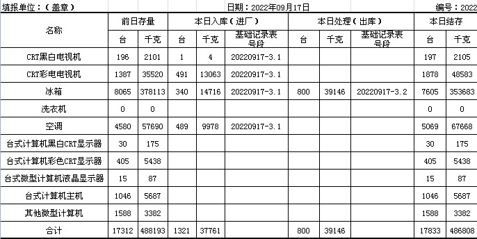 2022.09.17回收拆解統(tǒng)計表