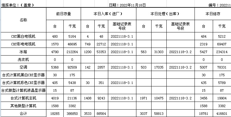 2022.11.18回收拆解統(tǒng)計(jì)表