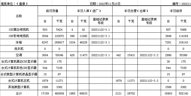 2022.11.22回收拆解統(tǒng)計(jì)表
