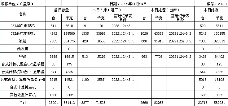 2022.11.24回收拆解統(tǒng)計(jì)表
