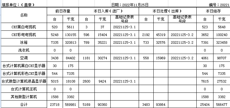 2022.11.25回收拆解統(tǒng)計(jì)表