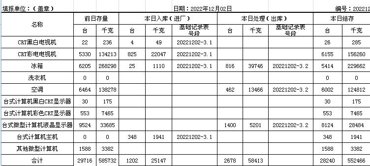 2022.12.02回收拆解統(tǒng)計(jì)表