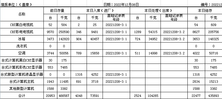 2022.12.08回收拆解統(tǒng)計(jì)表