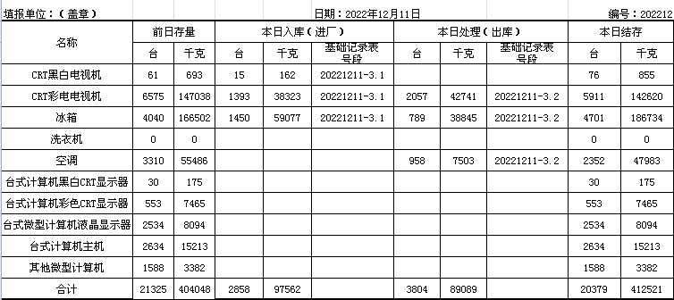 2022.12.12回收拆解統(tǒng)計(jì)表