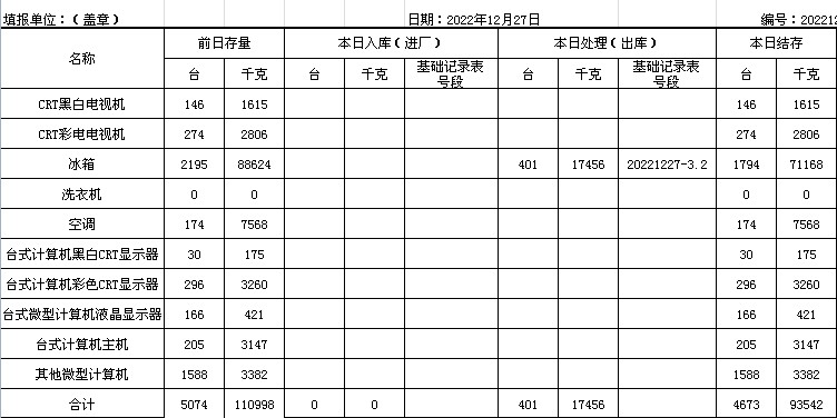 2022.12.27回收拆解統(tǒng)計(jì)表
