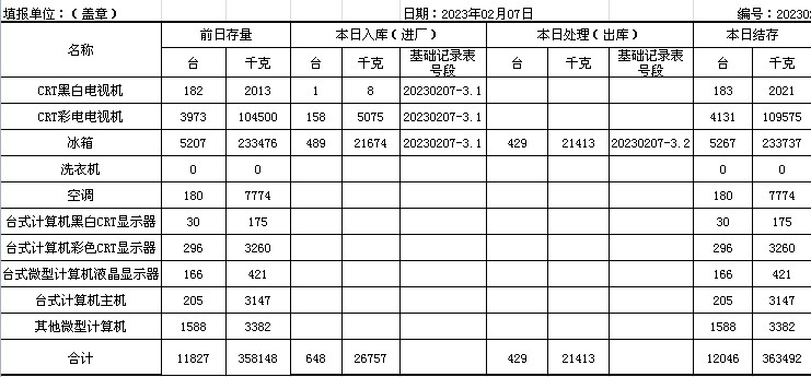 2023.02.07回收拆解統(tǒng)計(jì)表