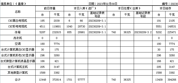 2023.02.09回收拆解統(tǒng)計(jì)表