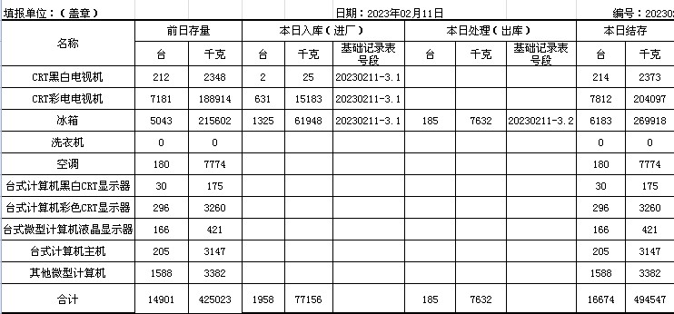 2023.02.11回收拆解統(tǒng)計(jì)表