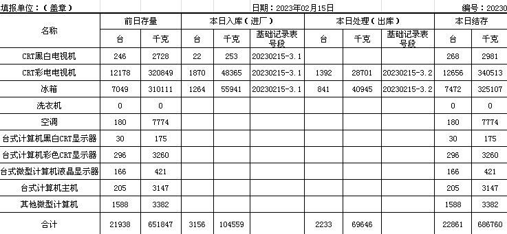 2023.02.15回收拆解統(tǒng)計(jì)表