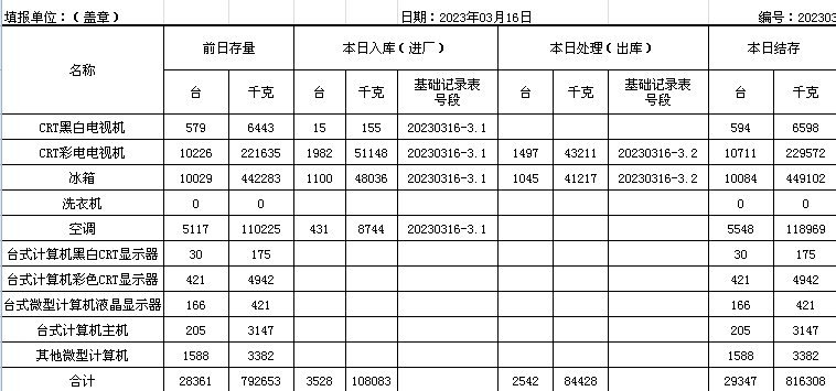 2023.03.16回收拆解統(tǒng)計(jì)表