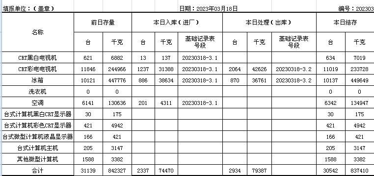 2023.03.18回收拆解統(tǒng)計(jì)表