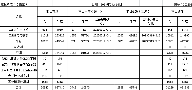 2023.03.19回收拆解統(tǒng)計表