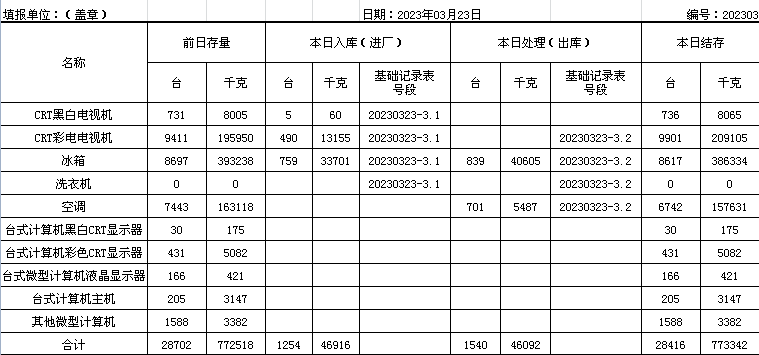 2023.03.23回收拆解統(tǒng)計表