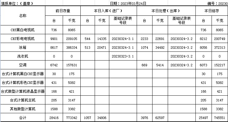 2023.03.24回收拆解統(tǒng)計(jì)表
