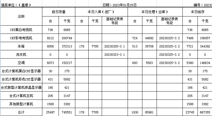 2023.03.25回收拆解統(tǒng)計(jì)表