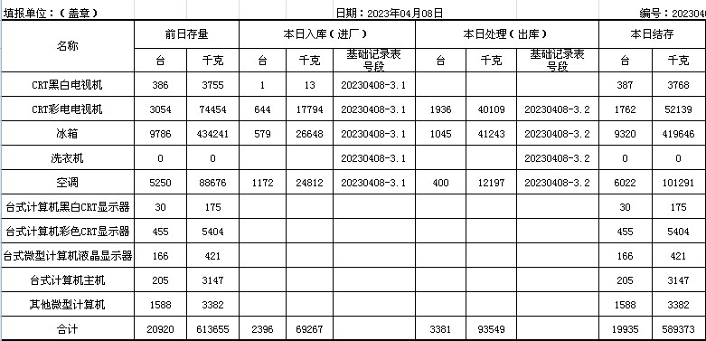 2023.04.08回收拆解統(tǒng)計(jì)表