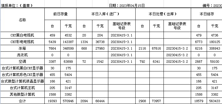 2023.04.15回收拆解統(tǒng)計(jì)表