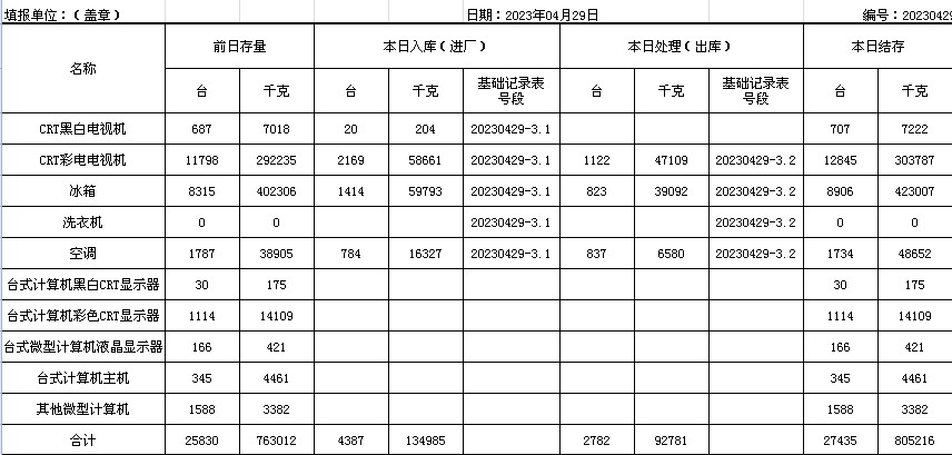 2023.04.29回收拆解統(tǒng)計表