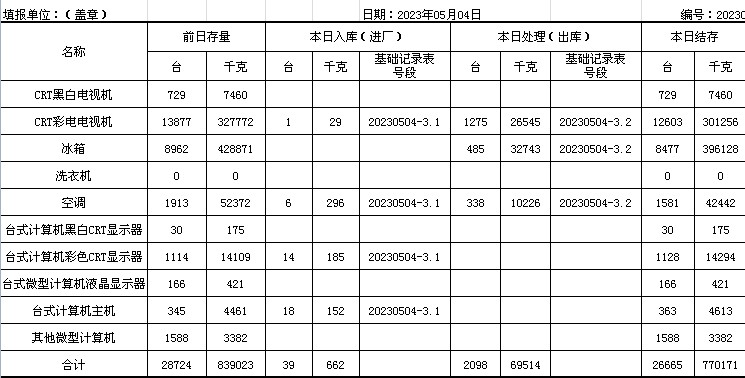 2023.05.04回收拆解統(tǒng)計(jì)表
