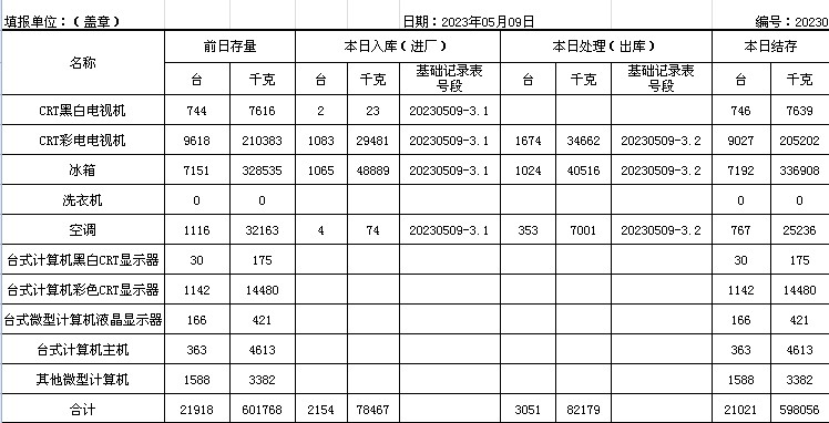 2023.05.09回收拆解統(tǒng)計表