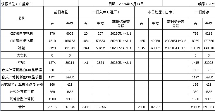 2023.05.14回收拆解統(tǒng)計(jì)表