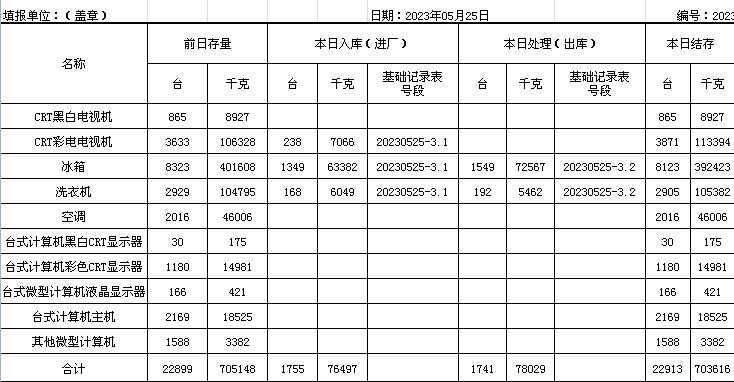 2023.05.25回收拆解統(tǒng)計(jì)表