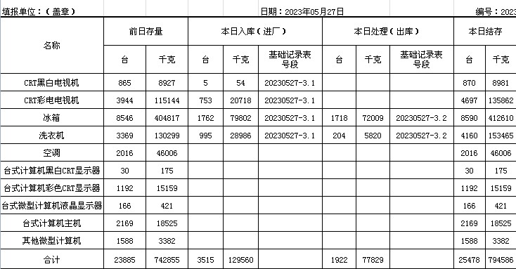 2023.05.27回收拆解統(tǒng)計(jì)表