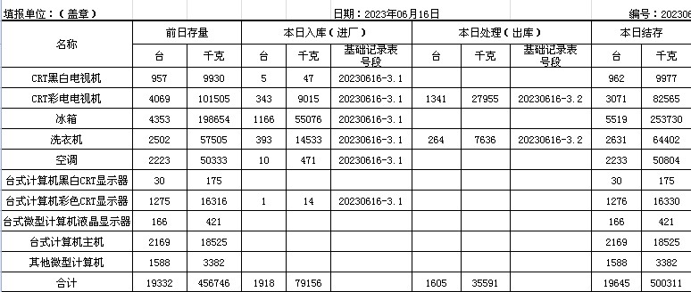 2023.06.16回收拆解統(tǒng)計(jì)表
