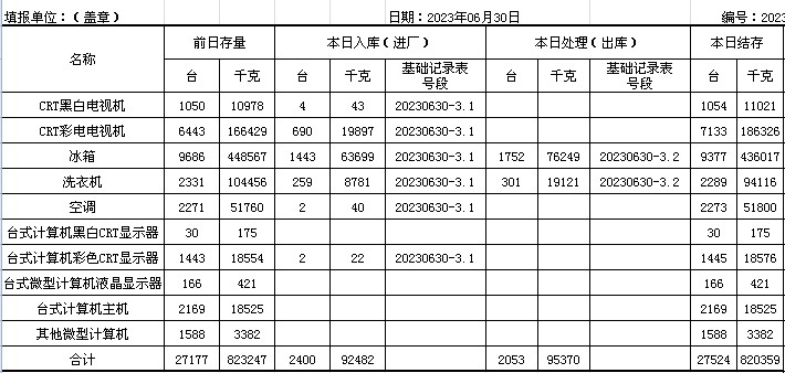 2023.06.30回收拆解統(tǒng)計(jì)表