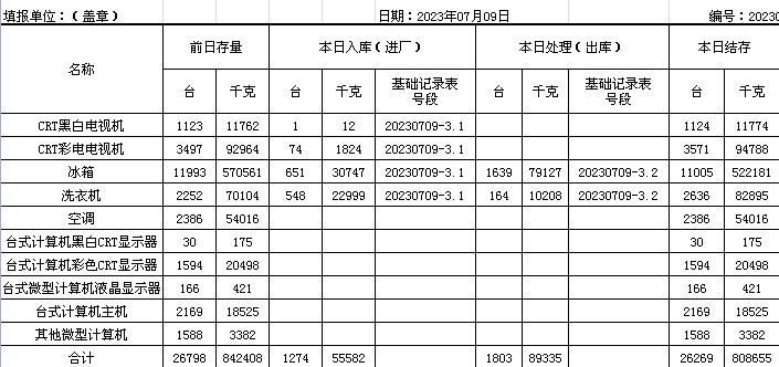2023.07.09回收拆解統(tǒng)計表