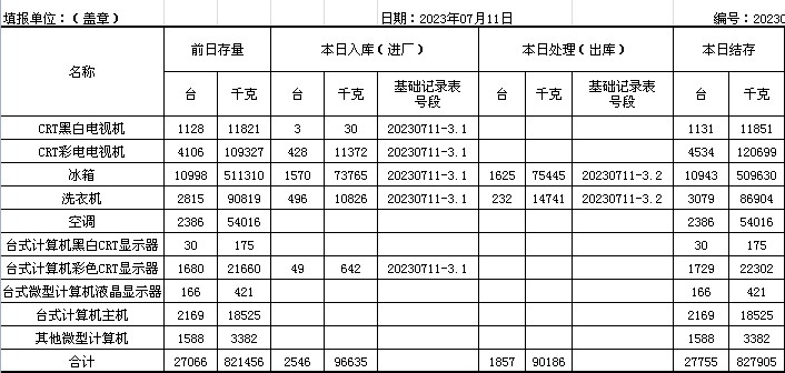 2023.07.11回收拆解統(tǒng)計表