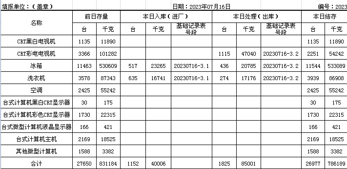 2023.07.16回收拆解統(tǒng)計(jì)表