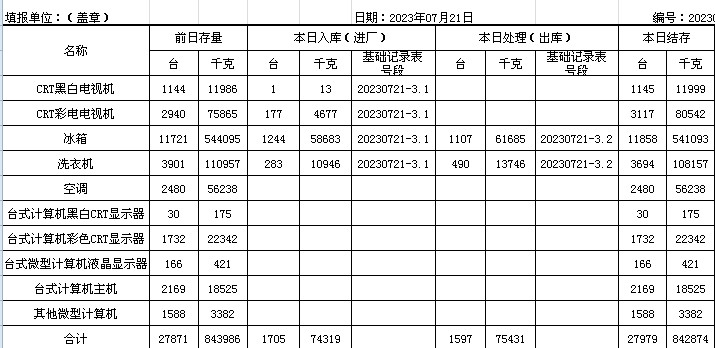 2023.07.21回收拆解統(tǒng)計(jì)表
