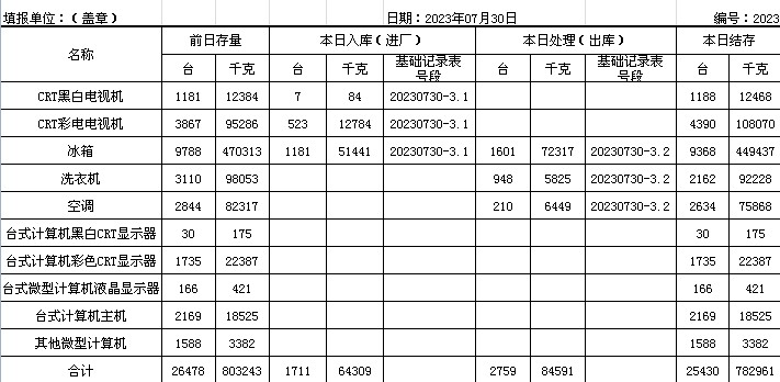 2023.07.30回收拆解統(tǒng)計(jì)表