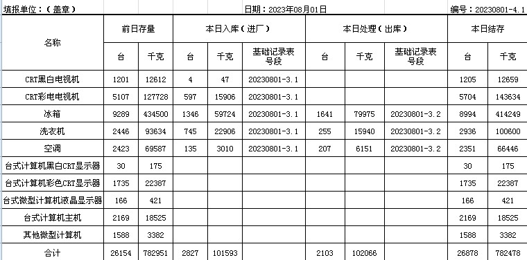 2023.08.01回收拆解統(tǒng)計(jì)表