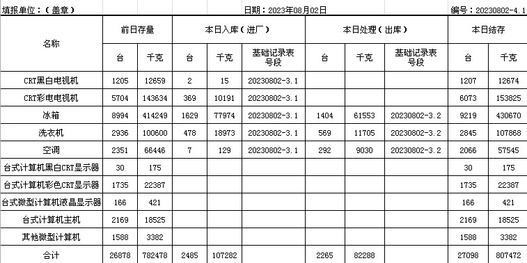 2023.08.01回收拆解統(tǒng)計(jì)表