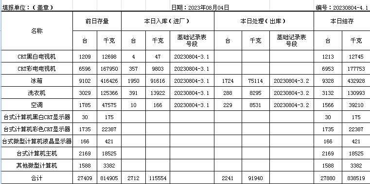 2023.08.04回收拆解統(tǒng)計(jì)表