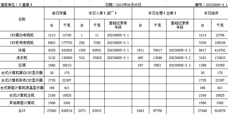 2023.08.05回收拆解統(tǒng)計表