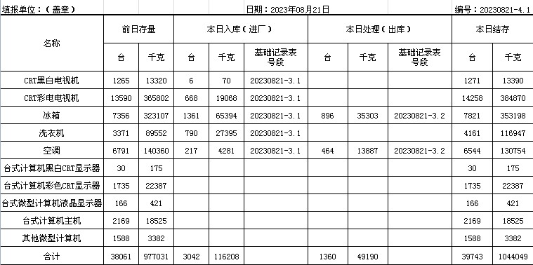 2023.08.21回收拆解統(tǒng)計(jì)表