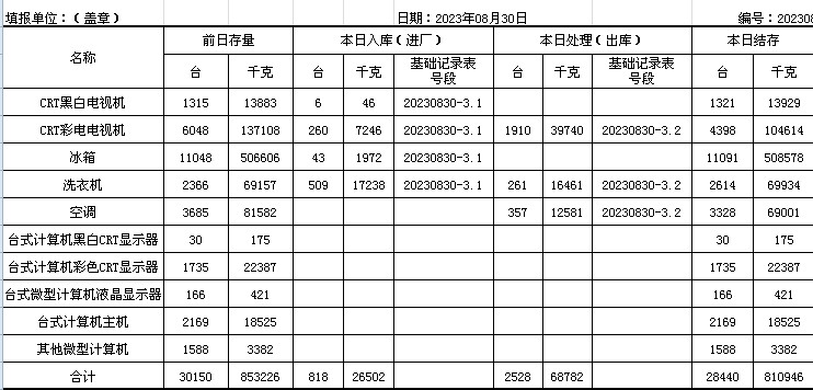 2023.08.30回收拆解統(tǒng)計(jì)表