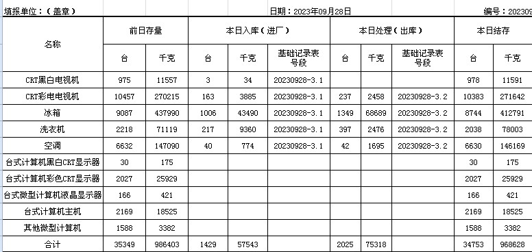 2023.09.28回收拆解統(tǒng)計表