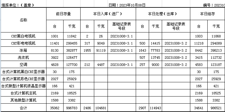 2023.10.08回收拆解統(tǒng)計(jì)表