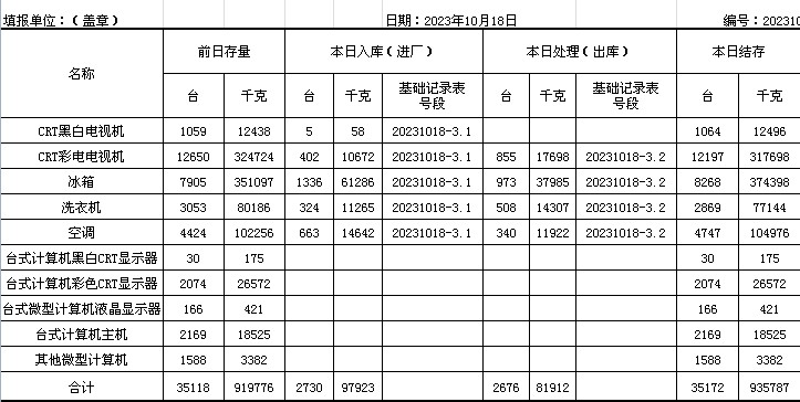 2023.10.18回收拆解統(tǒng)計(jì)表