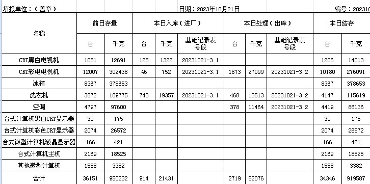 2023.10.21回收拆解統(tǒng)計(jì)表