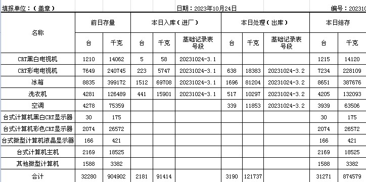 2023.10.24回收拆解統(tǒng)計(jì)表