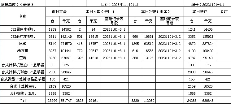 2023.11.01回收拆解統(tǒng)計(jì)表