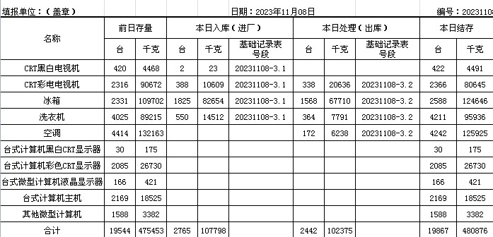 2023.11.08回收拆解統(tǒng)計(jì)表