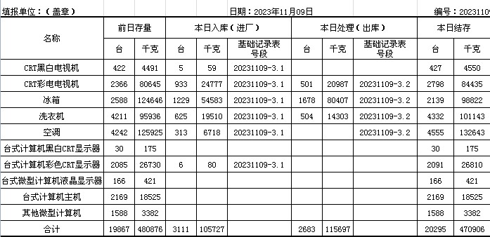 2023.11.09回收拆解統(tǒng)計(jì)表