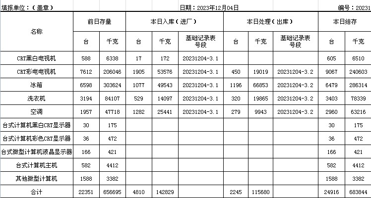 2023.12.04回收拆解統(tǒng)計(jì)表