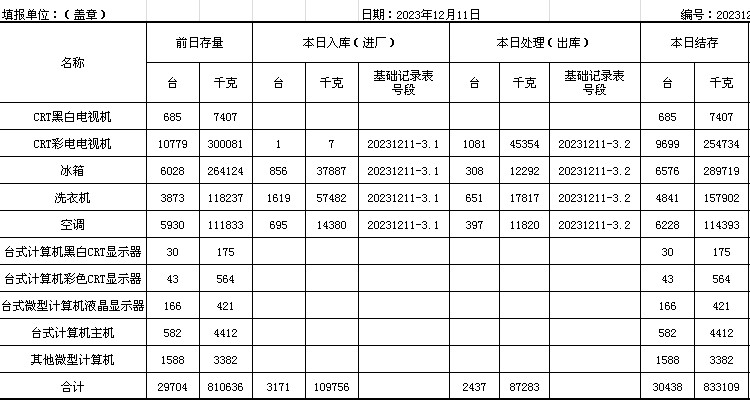 2023.12.11回收拆解統(tǒng)計表
